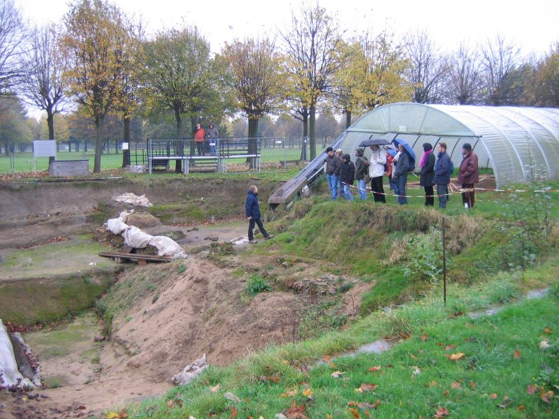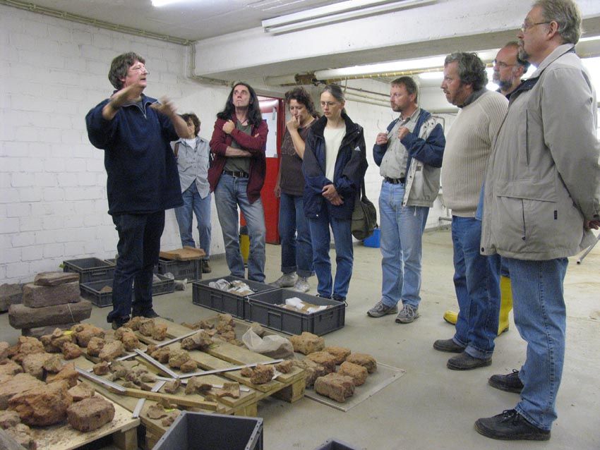 Alan Brown führte zuerst über die Grabung der AS Titz des Rheinischen Amtes für Bodendenkmalpflege an der Ortskirche von Jüchen-Otzenrath. Durch den kompletten Abriss waren die Bauphasen der gesamten Kirchenentwicklung zu sehen. Danach wurde die Grabung im Tagebau Hambach besucht. Außer den Restbefunden der römischen villa mit einem Speicherbau und burgus an der Tagebaukante wurde die laufende Untersuchung von vier römischen Brunnen in unterschiedlichen Bearbeitungsstadien auf der 1. Sohle des Tagebaus in 26 m Tiefe erläutert und die Grabungsmethodik diskutiert. Abschließend wurde noch das eisenzeitliche Gehöft im Freigelände der Außenstelle Titz aufgesucht.