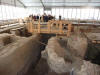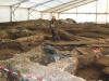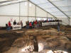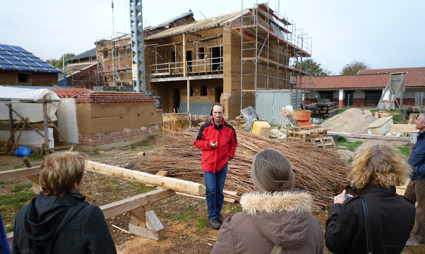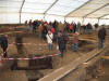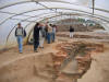 Eines der im Bau befindlichen Streifenhäuser wurde besichtigt und die Probleme der heutigen Lehmbauer mit den römischen Bautechniken erläutert.