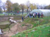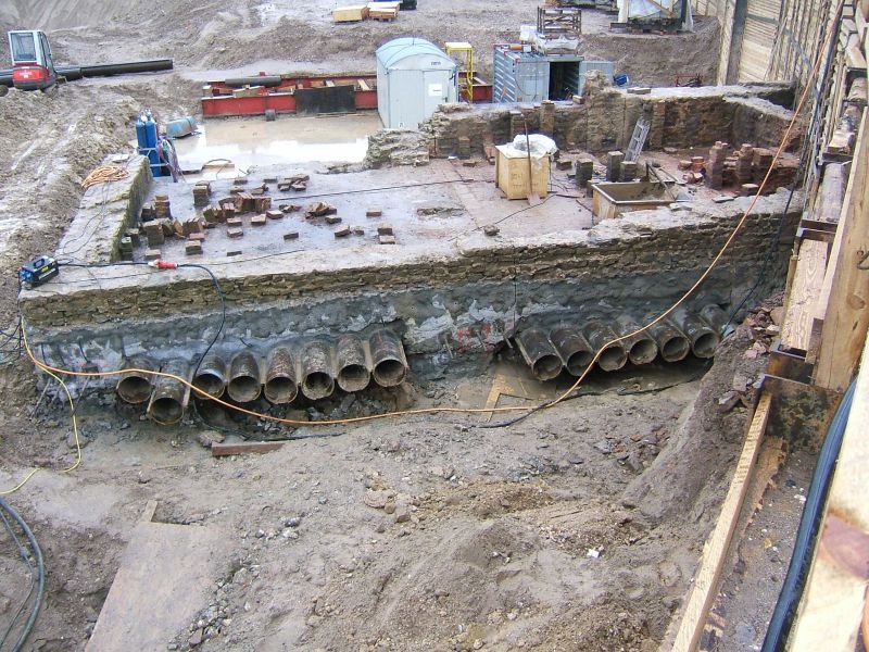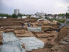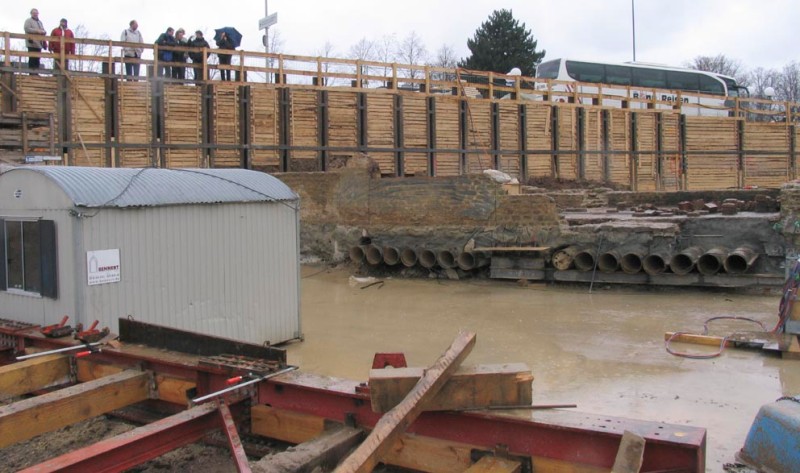 Nach der Jahreshauptversammlung wurde am Nachmittag aus aktuellem Anlass nochmals die Flächengrabung des Rheinischen Amtes für Bodendenkmalpflege im Vorfeld des Baus des IKBB / UNCC (Internationalen Kongresszentrums Bundeshaus Bonn/ United Nations Congress Center) besucht. Die technischen Vorbereitungen einer Spezialfirma zur geplanten Translozierung eines Teils des römischen Bades wurden von dem Grabungsleiter Dr. C. Ulbert erläutert.