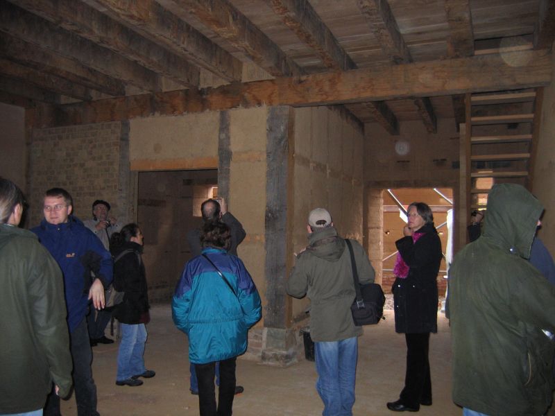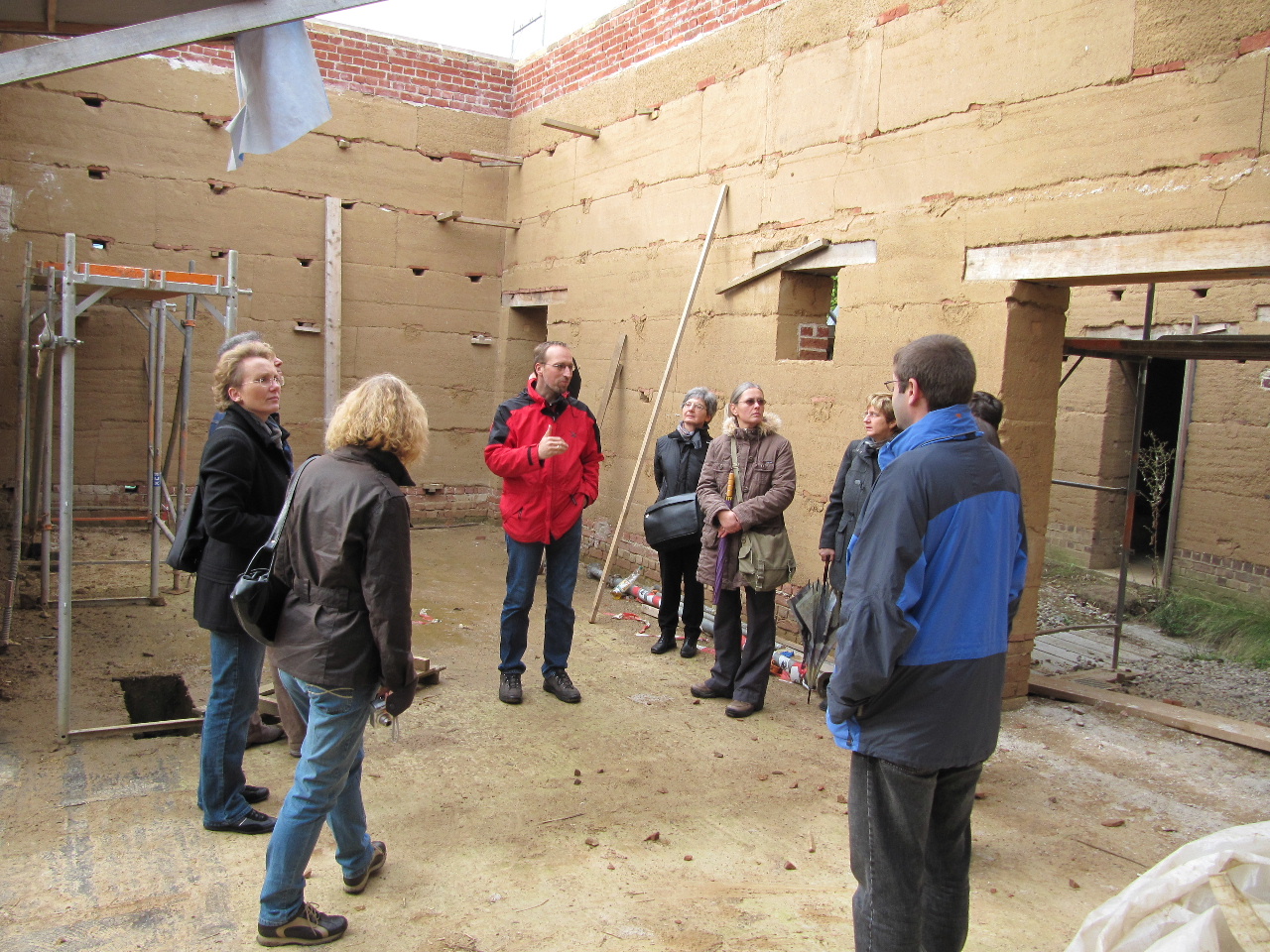 mit 12 Teilnehmern am 24.10.2009 im archäologischen Park Xanten zum Thema "römischer Lehmhausbau". Herr Dr. P. Kienzle erläuterte das Bauprojekt "Römische Wohnhäuser". Drei Handwerkerhäuser wurden über dem entsprechenden archäologischen Befund in einer Lehmbautechnik gebaut, die der römerzeitlichen nachempfunden ist. Dem Experiment gingen jahrelange Forschungen und Versuche in Xanten voraus.