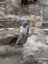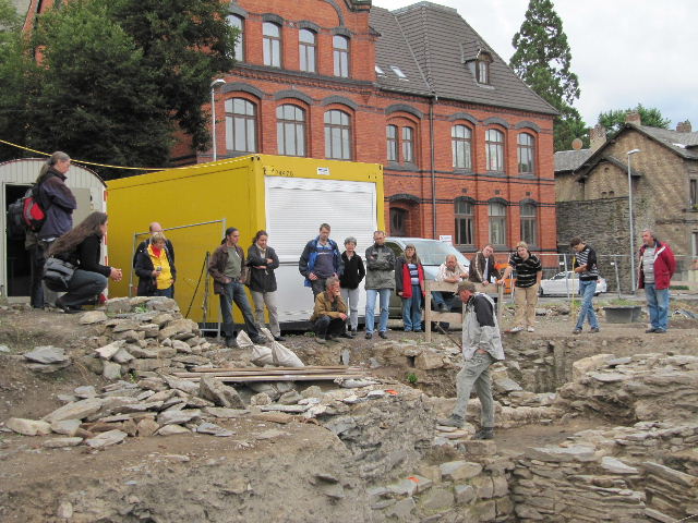 In Andernach führte der Grabungstechniker Frank Brüninghaus über seine Stadtkerngrabung. Von vorgeschichtlichen Gruben bis zur neuzeitlichen Bebauung reichte die Vielfalt der Befunde. Ein Schwerpunkt lag auf der römischen Bebauung (Stadtmauer, Bad, Vicus). Viele Beobachtungen müssen noch gedeutet werden und so ergaben sich interessante Gespräche.