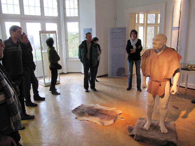 mit 12 Teilnehmern am 27.03.2010 mit einer Führung von Frau F. Gayck M.A. durch das extra geöffnete Museum für die Archäologie des Eiszeitalters im Schloss Monrepos in Neuwied. Als Zweigstelle des RGZM Mainz ist Schloss Monrepos Forschungsstation und Museum. Ausgehend von den Grabungen im Neuwieder Becken wird anhand von Leihgaben und Kopien von Leitfunden aus Europa die Entwicklung des Neandertalers und des frühen Jetzt-Menschen gezeigt.