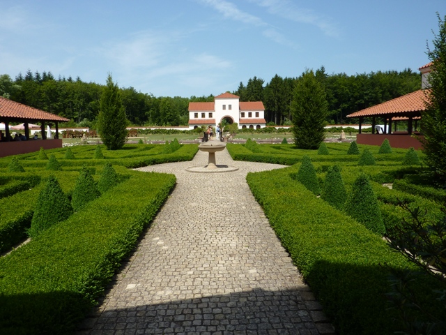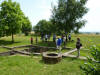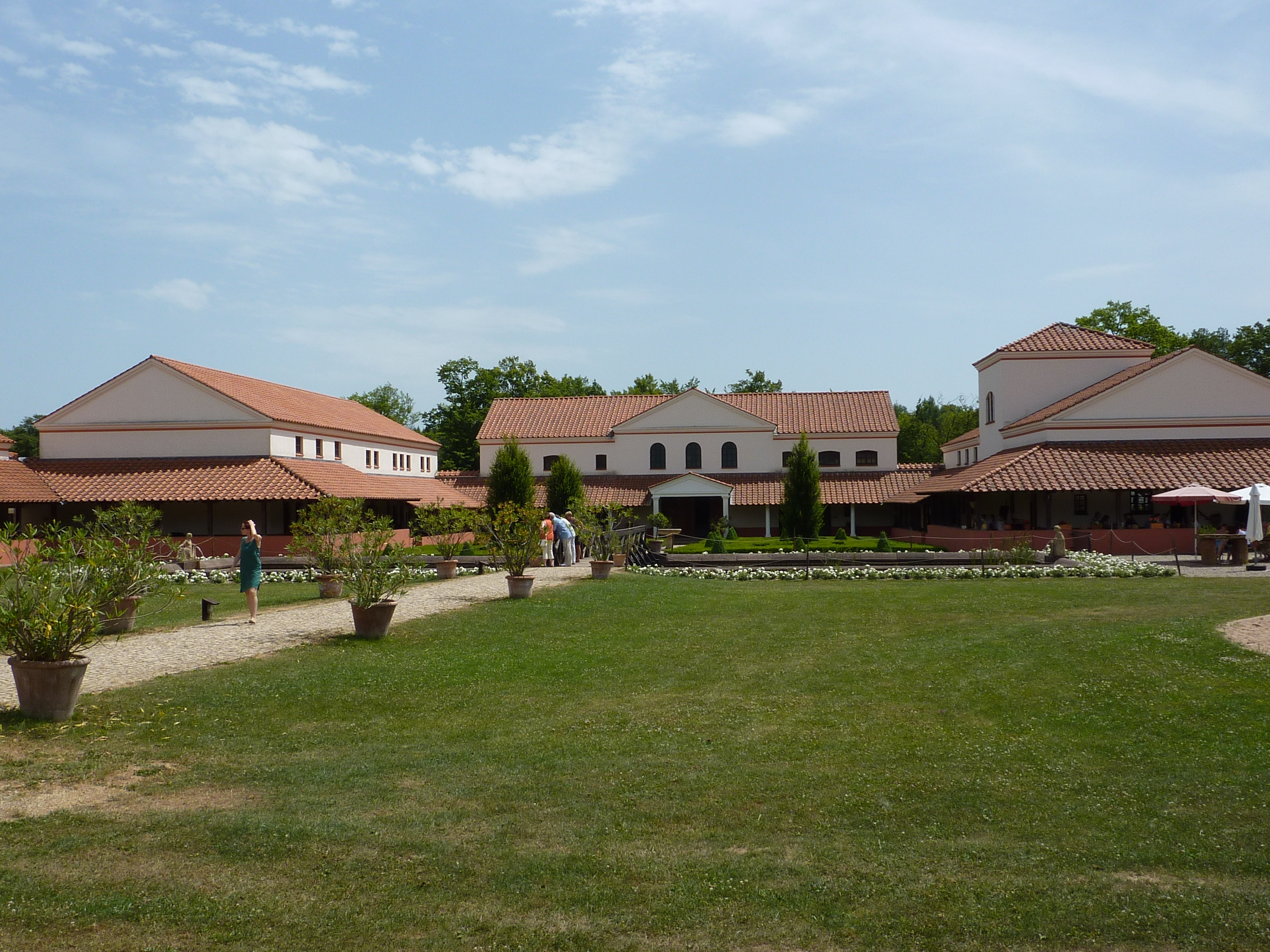 Am Samstagvormittag trafen wir uns bei weit über 30oC zur Führung durch den Archäologiepark Römische Villa Borg in Perl-Borg. In dem 7,5 ha großen Areal finden seit 1987 bis heute ständig Ausgrabungen statt. Auf den Originalbefunden entstanden dann die heutigen Rekonstruktionen der Gebäudeanlage mit Herrenhaus, Bad, Wirtschaftsflügel, Küche, Taverne und den Außenanlagen. Im Jahre 2000 wurden im Rahmen des EU-Projektes "Gärten ohne Grenzen" sechs Themengärten auf dem Villengelände angelegt. Der Grabungstechniker Herr Prill, der die Ausgrabungen von Beginn an durchführte und auch die Rekonstruktionen begleitete, erläuterte das grabungstechnische Vorgehen und die Entstehungsgeschichte der heutigen Anlage.